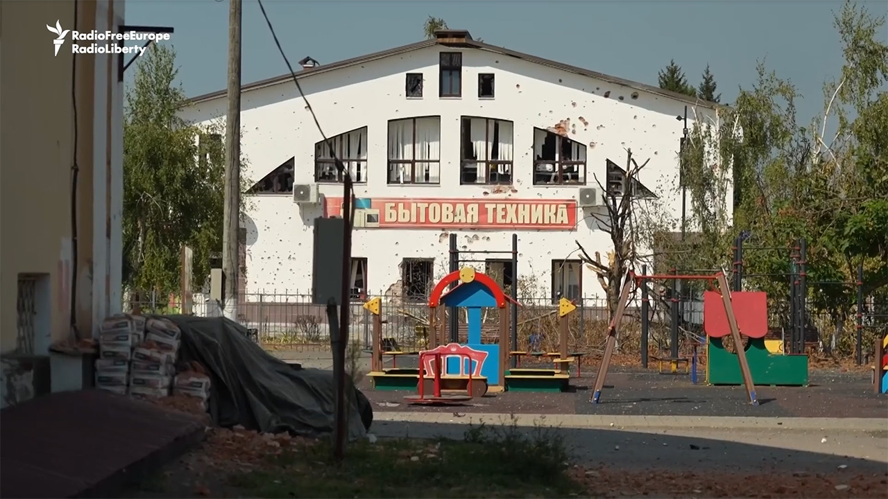 The border town of Sudzha, Kursk region, was captured by the Ukrainian Army in August 2024. It was recaptured by the Russians in March 2025 / Screenshot: RFE/RL |